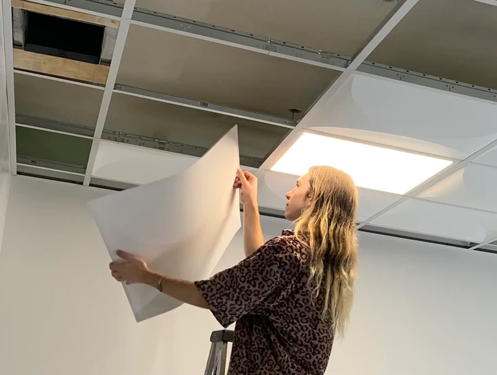 Standard acoustic tiles really only have one way to install, whereas Brutal tiles can be rotated, flipped, and swapped to create anything from a uniform grid to a dynamic and eye-catching ceiling landscape.